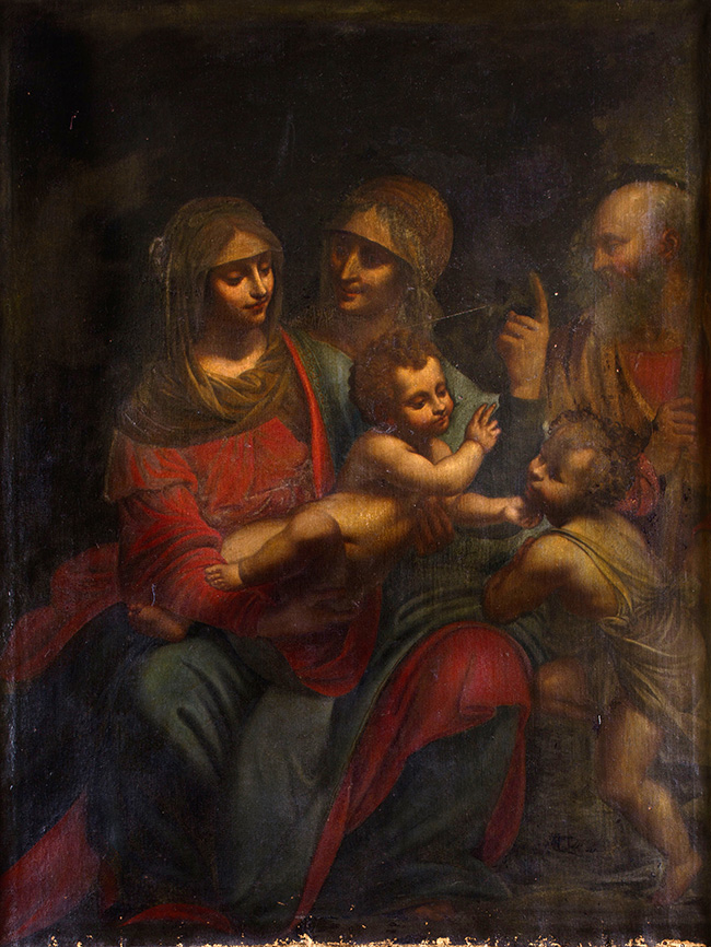 The painting is a copy of lesser quality of the famous painting by Bernardini Luini, kept at Pinacoteca Ambrosiana. That painting was one of the favourite of Federico Borromeo who wanted it to be one of the most remarkable works of art of the Ambrosiana collection. Such a preference contributed to give the painting its utmost fame in the course of the centuries. Luini’ s painting is inspired as well to one of Leonardo’s cartons at the National Gallery in London.